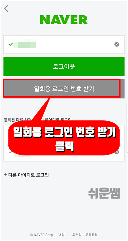 여러 명이 함께 사용하는 타인이나 공용컴퓨터에서 네이버에 로그인해야할때에는 일회용 로그인을 추천합니다.