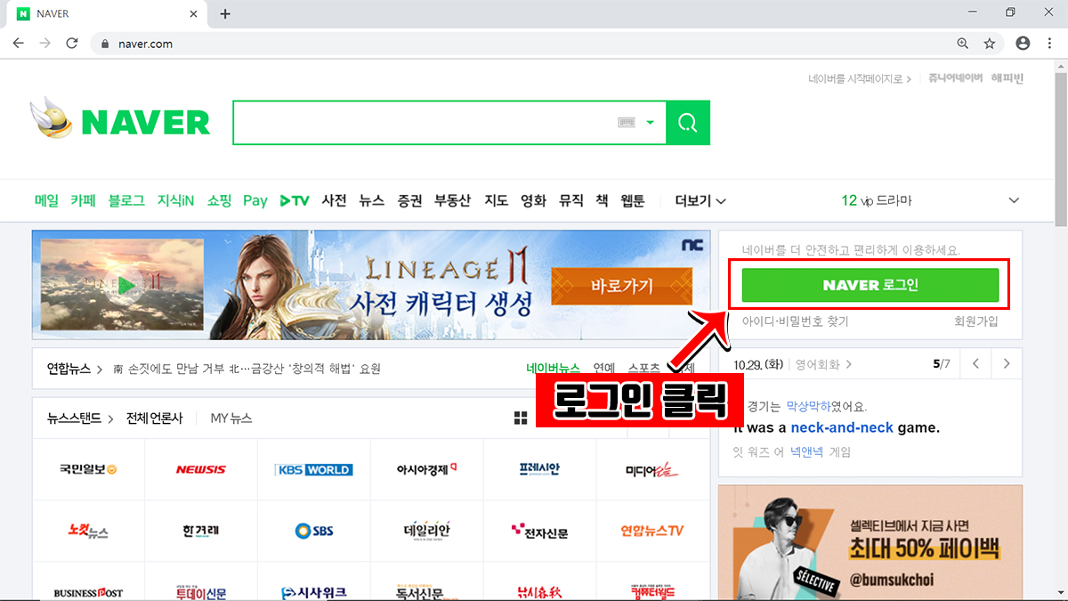 1. 컴퓨터에서 네이버 로그인 클릭 합니다.