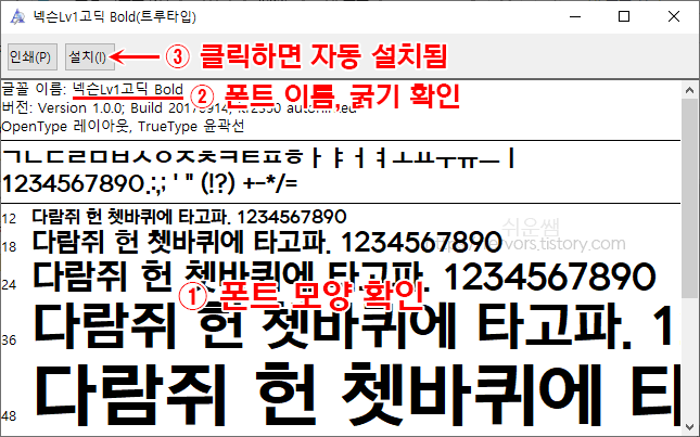 설치할 폰트를 더블클릭 → [설치] 클릭