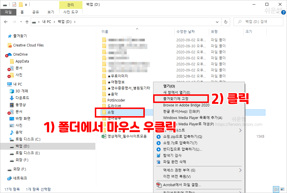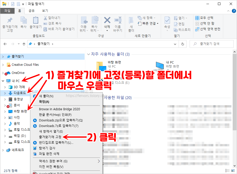 윈도우10 자주 사용하는 폴더 즐겨찾기에 고정해서 간편하게 사용하기