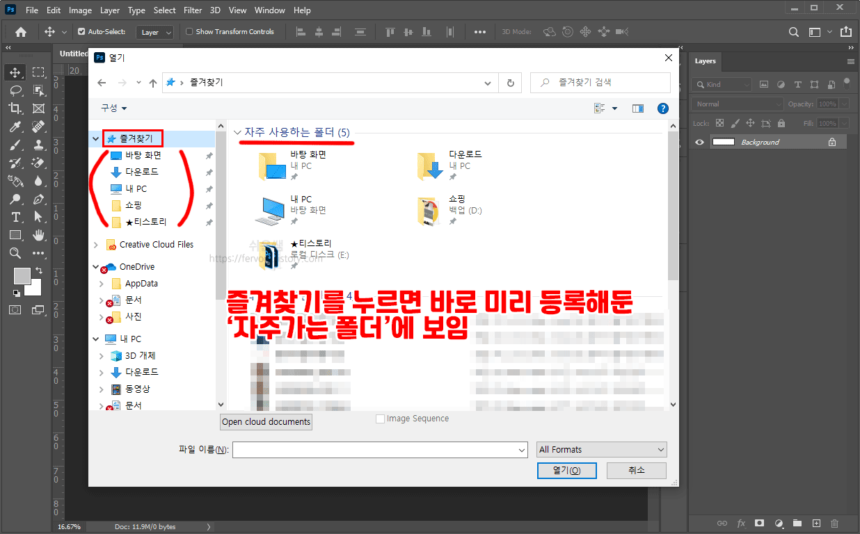 컴퓨터를 하면서 저장이나 불러오기 할 때 일일이 경로를 찾아갈 필요 없이 자주 사용하는 폴더 목록에서 빠르게 선택할 수 있습니다.