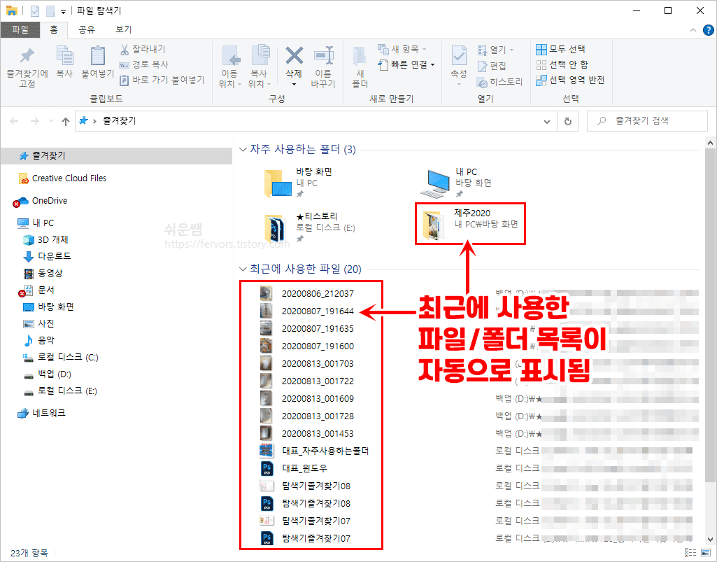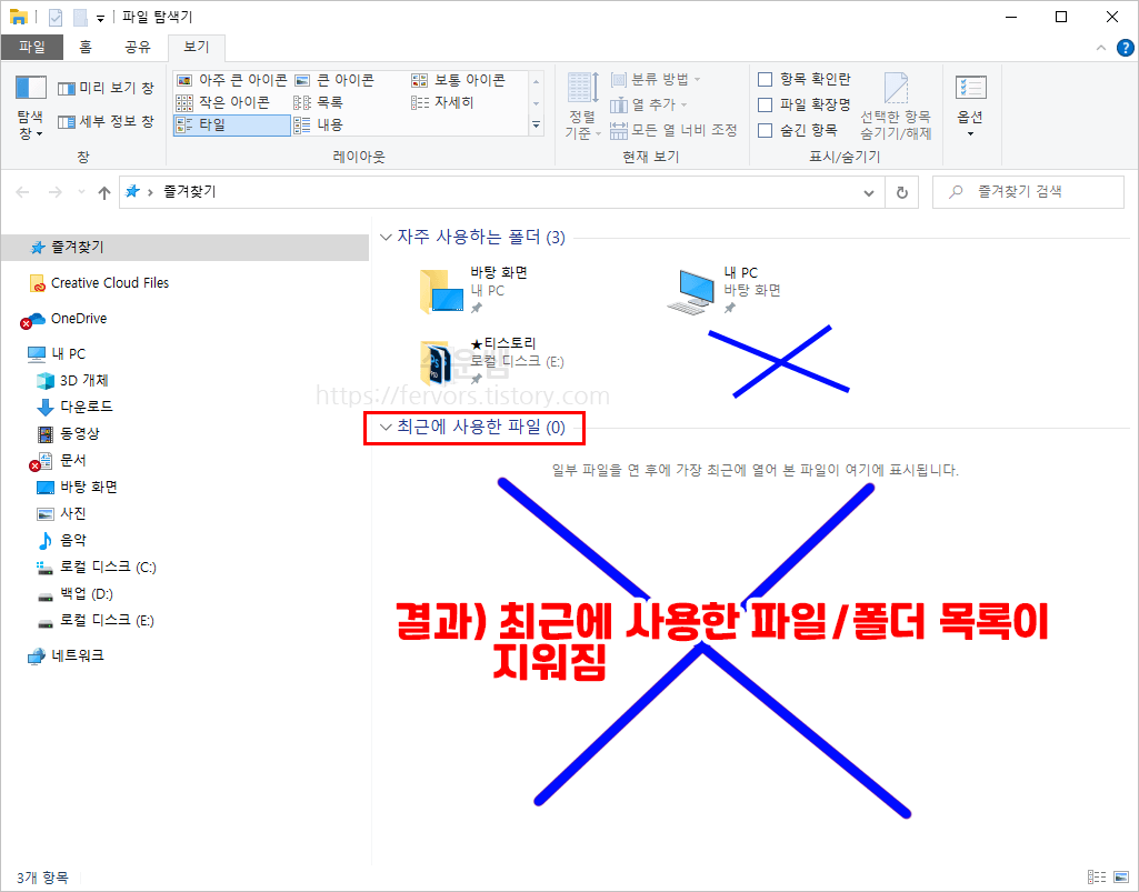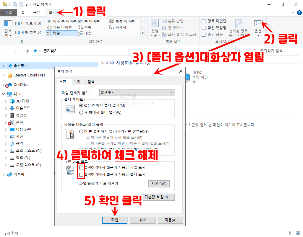 윈도우10 파일 탐색기 최근에 사용한 파일 삭제 및 표시안하기