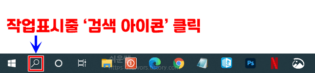 1. 작업표시줄의 검색아이콘을 클릭합니다.