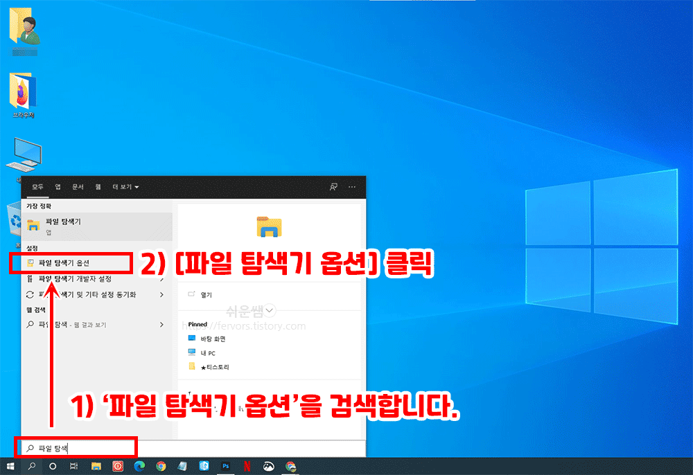 3. [파일 탐색기 옵션]에서 똑같이 설정하면 됩니다.