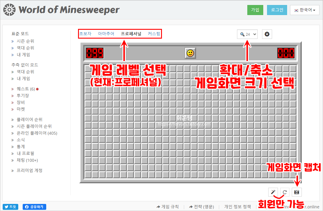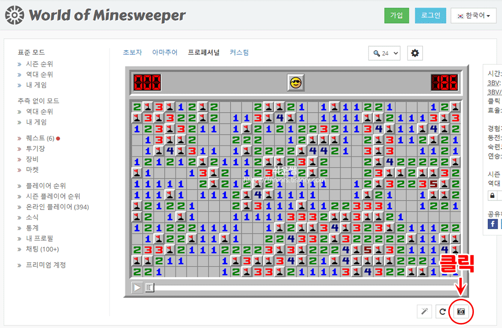 1. '지뢰찾기게임'을 할 수 있는 사이트가 여러 개가 있습니다. 그 중 하나입니다. 회원가입 안해도 됩니다.