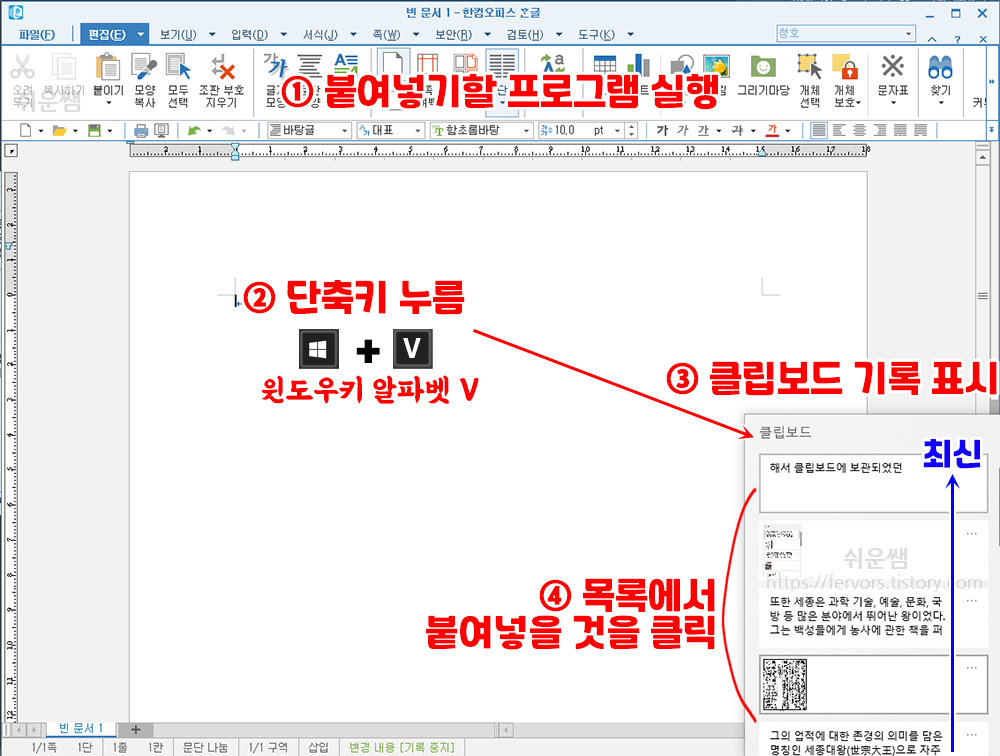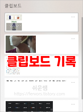 ③ 결과) 그동안 복사/잘라내기했던 클립보드기록이 열립니다.
