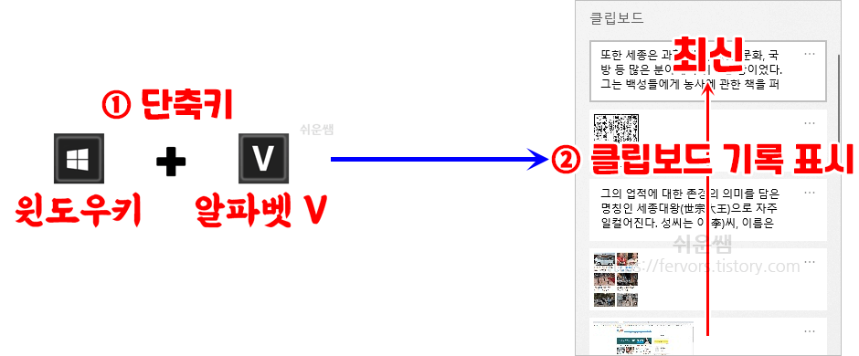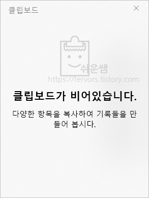 1. [윈도우키]+[V]를 눌러서 클립보드기록을 엽니다.