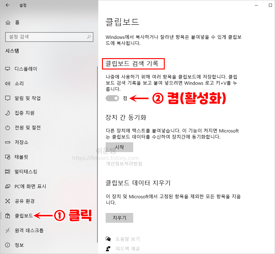 1단계) 클립보드 기록 활성화