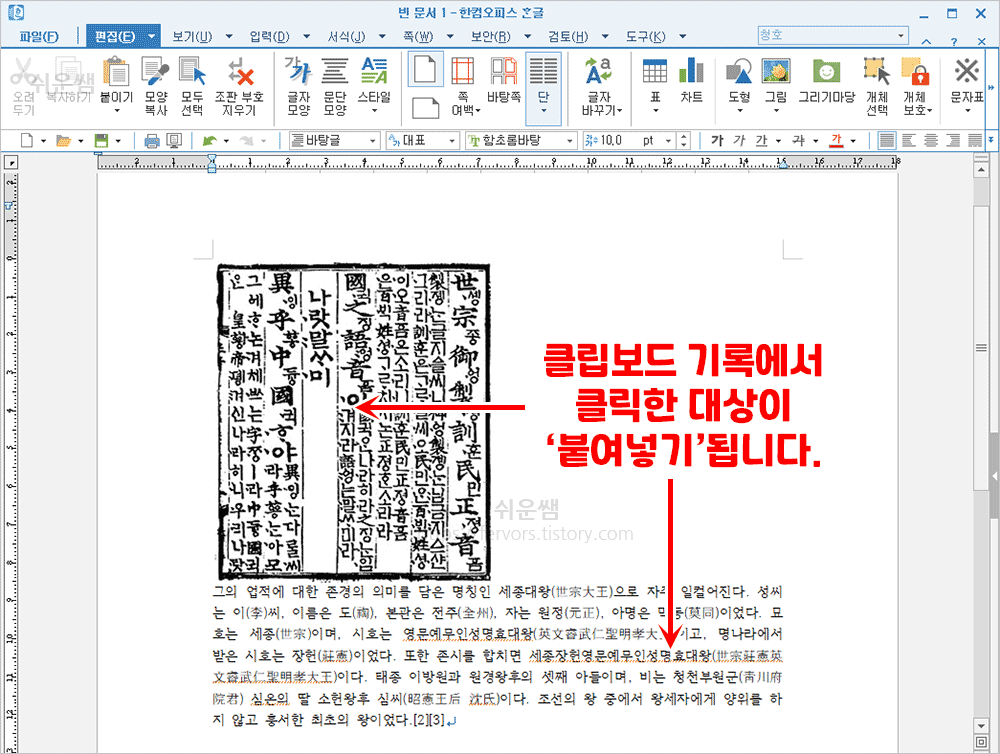 결과) 이미지, 텍스트가 붙여넣기 됩니다.