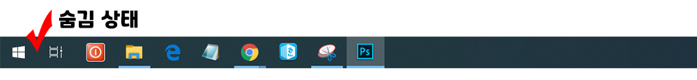 숨겨진 상태) '검색 아이콘'이나 '검색 상자'가 숨겨져 없는 상태