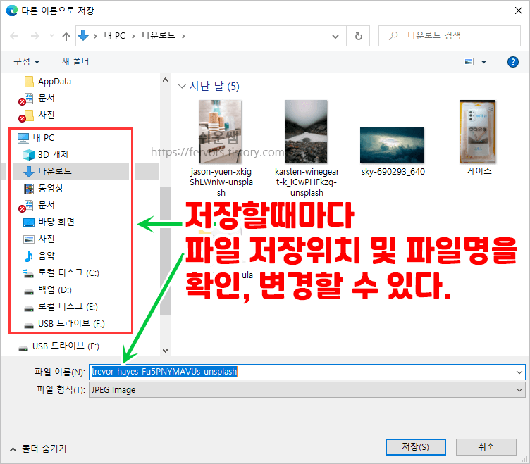 결과) 앞으로는 파일 다운로드시 새롭게 변경한 위치에 자동으로 파일이 다운로드됩니다.