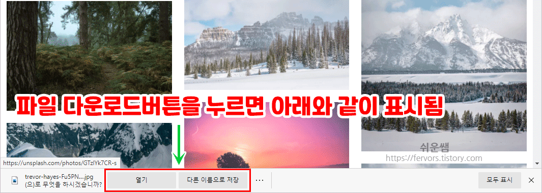 인터넷에서 파일 다운로드하는 방법은 웹브라우저마다 약간 다릅니다.
