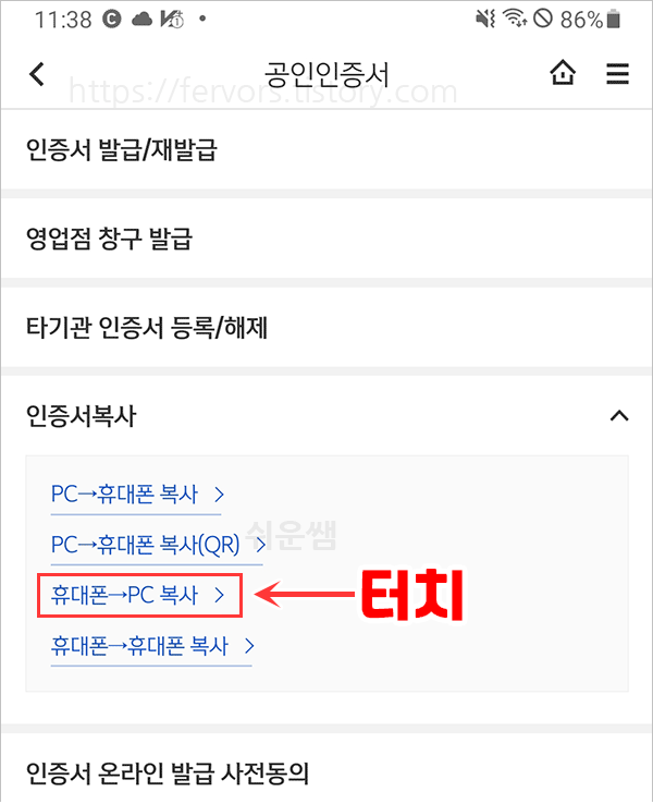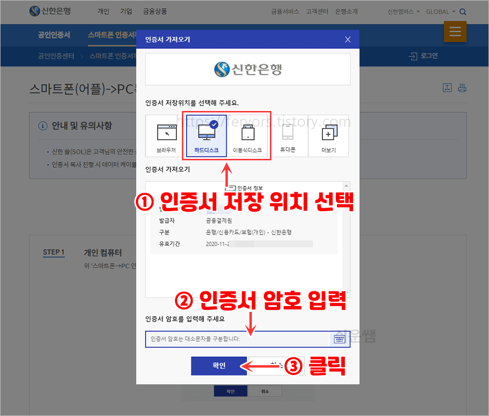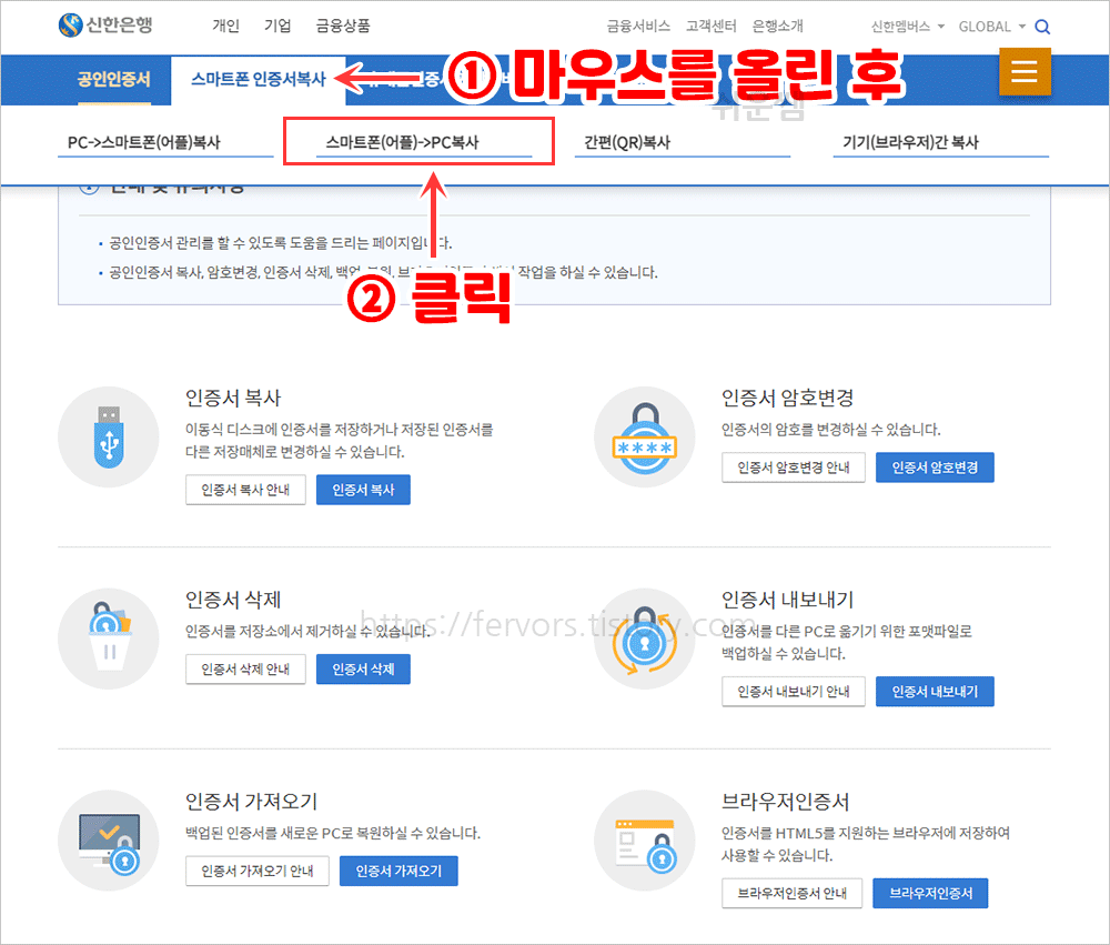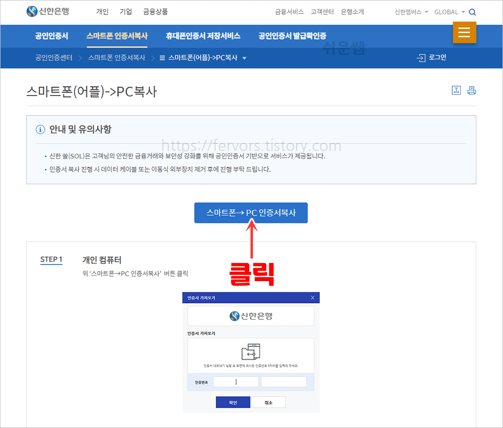 신한은행 공인인증서 복사 - 스마트폰에서 PC로 복사하는 방법