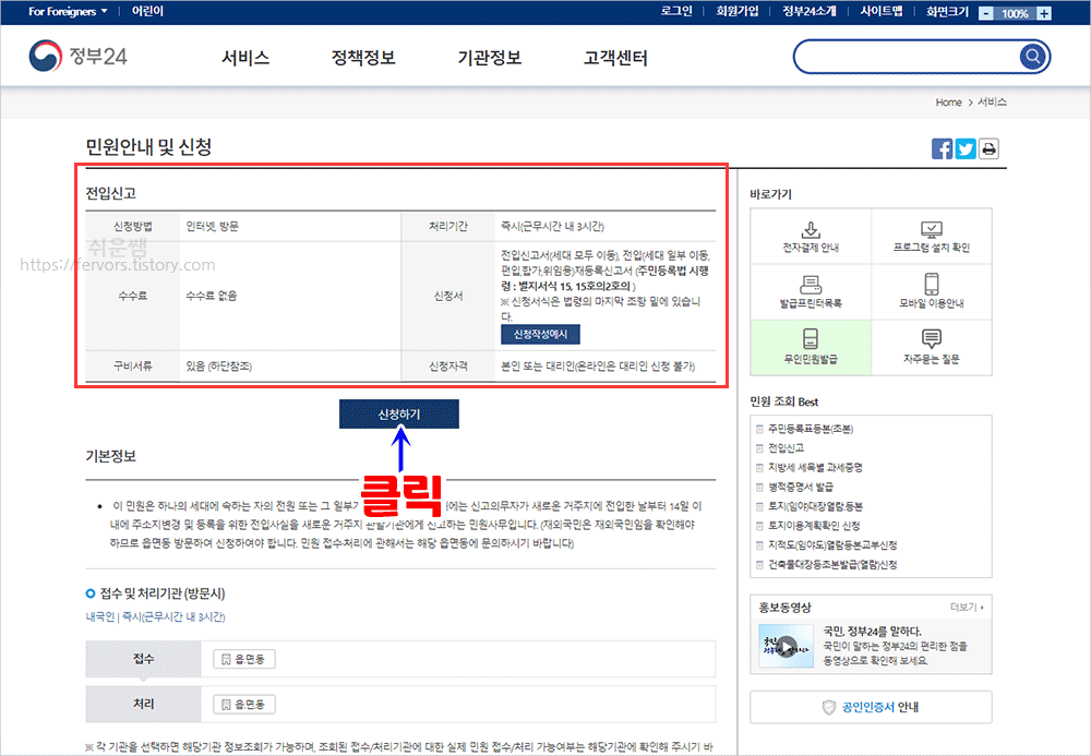 정부24 온라인전입신고 바로가기 클릭하면 연결됩니다.