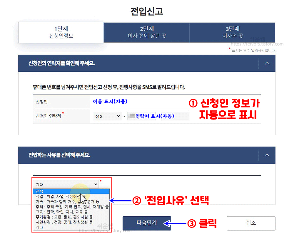 - 연락처, 전입사유 등