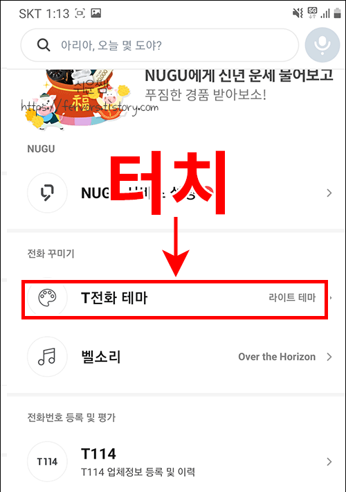 T전화 실행 > T설정 > T전화 테마 > 라이트모드