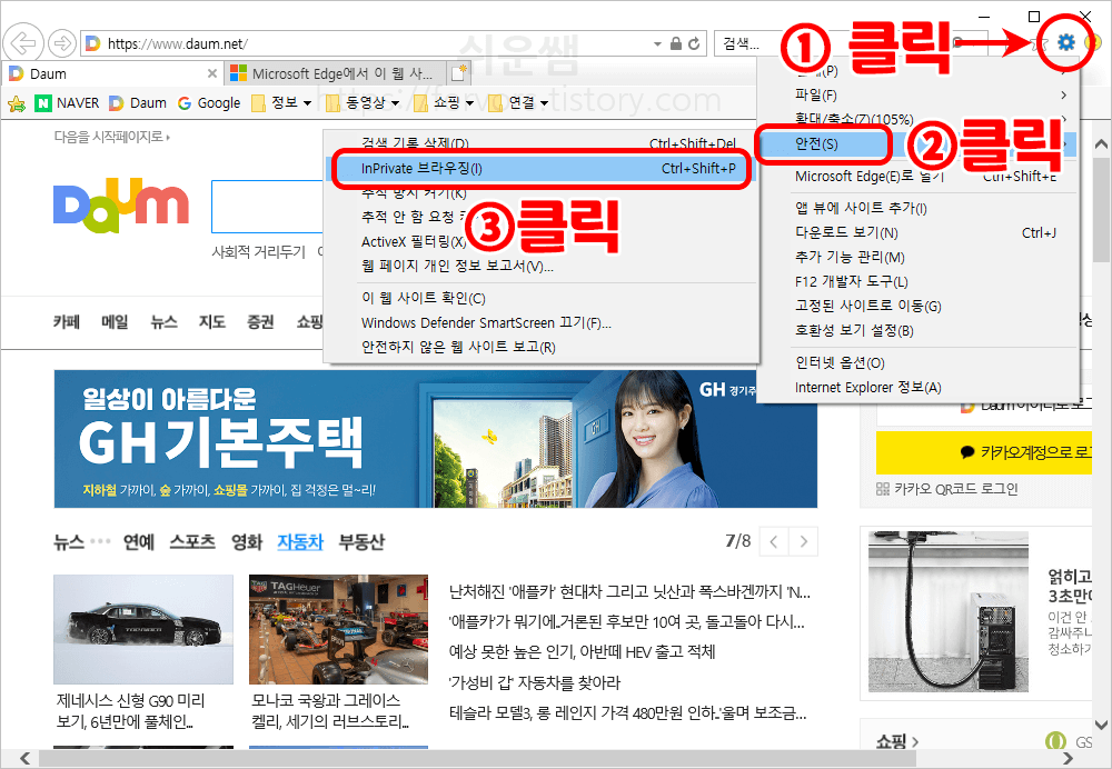 인터넷 익스플로러 시크릿모드 사용법