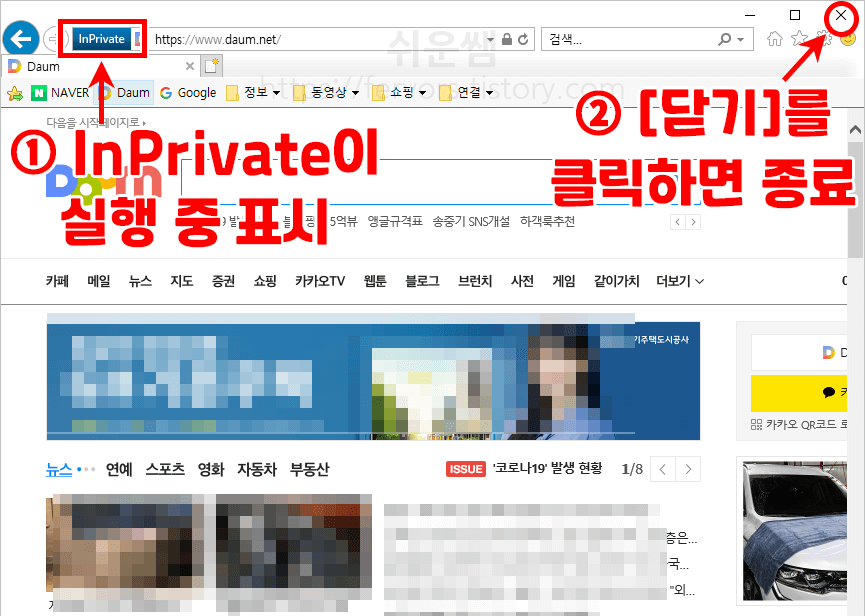익스플로러 시크릿모드 종료
