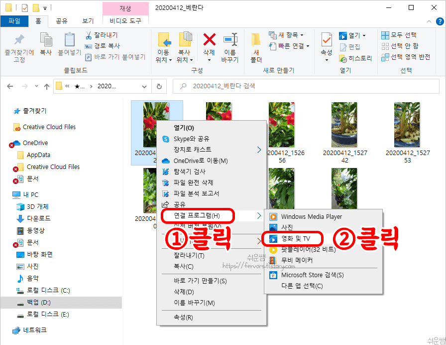 ① 동영상에서 마우스 오른쪽 단추를 클릭하고, [영화 및 TV]를 클릭합니다.