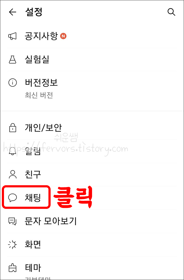 3. 항목중에서 [채팅]을 클릭합니다.