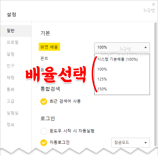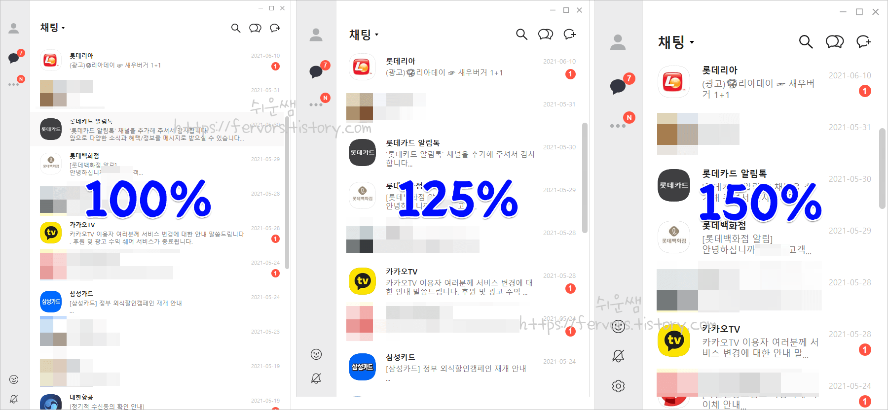 안녕하세요. 쉬운쌤입니다. 보통 20인치 이상의 모니터를 사용중이실겁니다. 그런데, 모니터크기에 비해 카카오톡 사이즈는 작은편입니다. 따라서 글자, 메뉴, 이미지 등이 작게 보입니다.