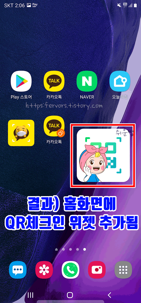 홈 화면에 카카오톡 QR체크인 위젯 등록, 사용법