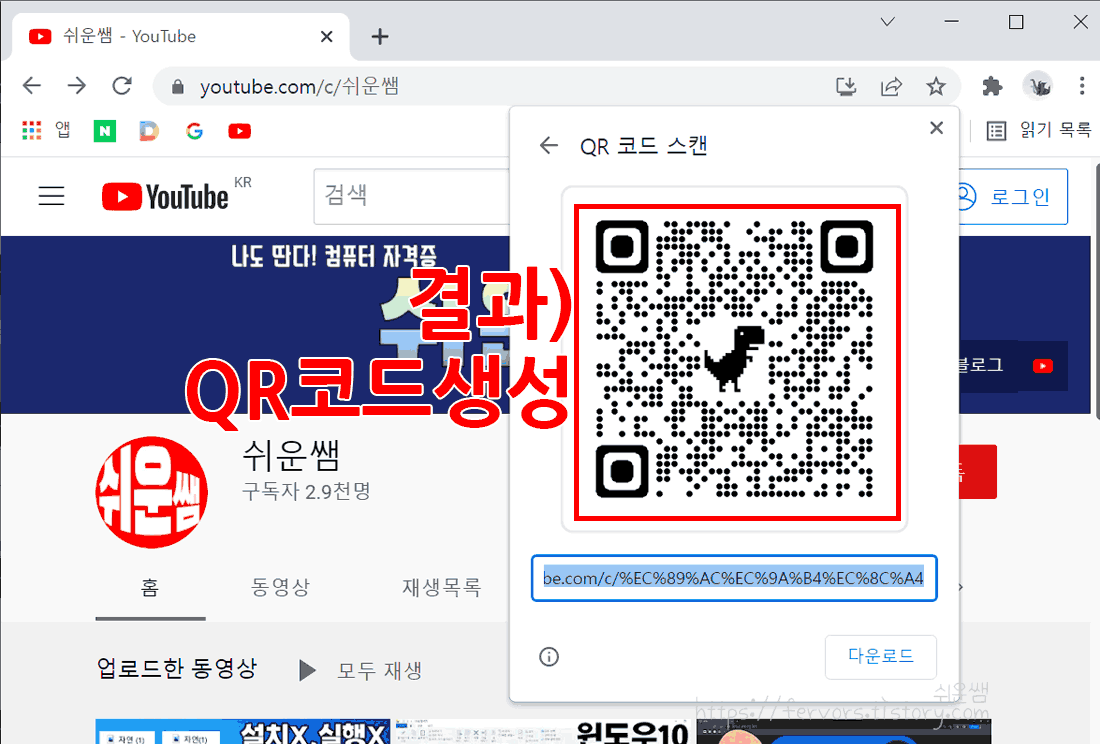 2. QR코드가 생성되었으며, 위에 방법과 마찬가지로 저장하기 또는 캡처하여 사용하면 됩니다.