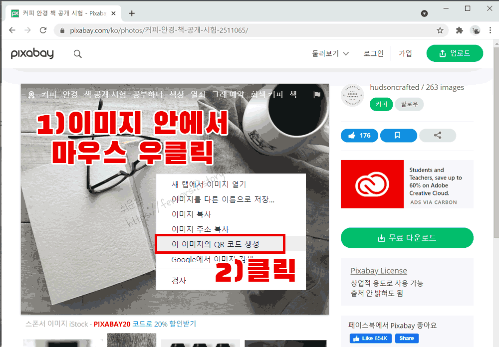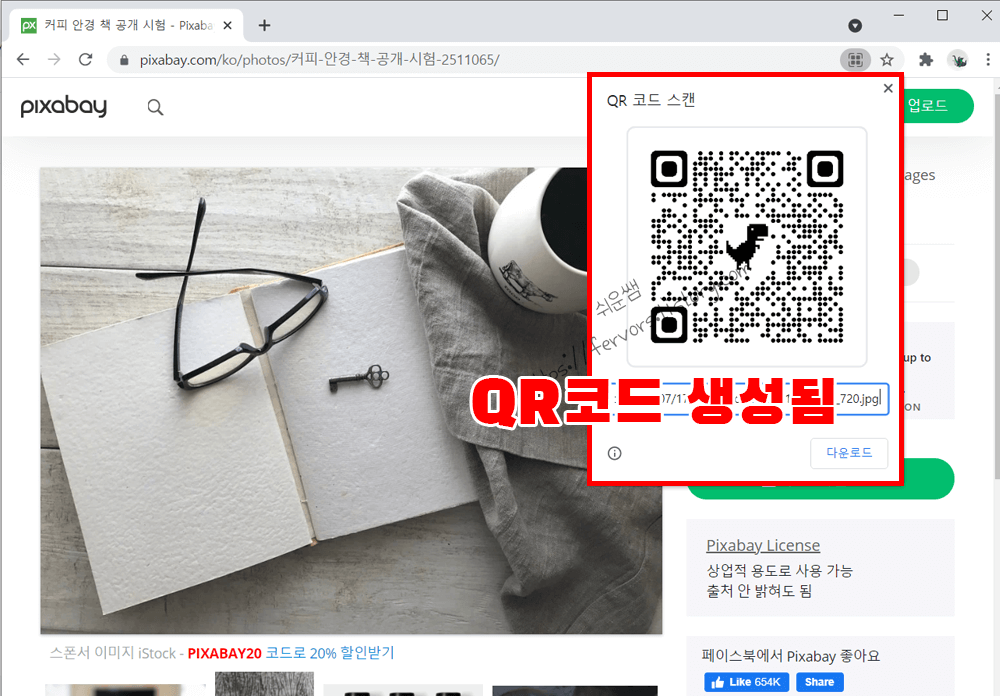 쉬운쌤입니다. 인터넷에서 무료로 QR코드를 만드는 방법은 여러가지가 있습니다. 크롬에서는 로그인을 없이도, 클릭 두번으로 아주 간단하게 인터넷 웹페이지와 이미지의 QR코드를 만들수 있다는 장점이 있습니다.