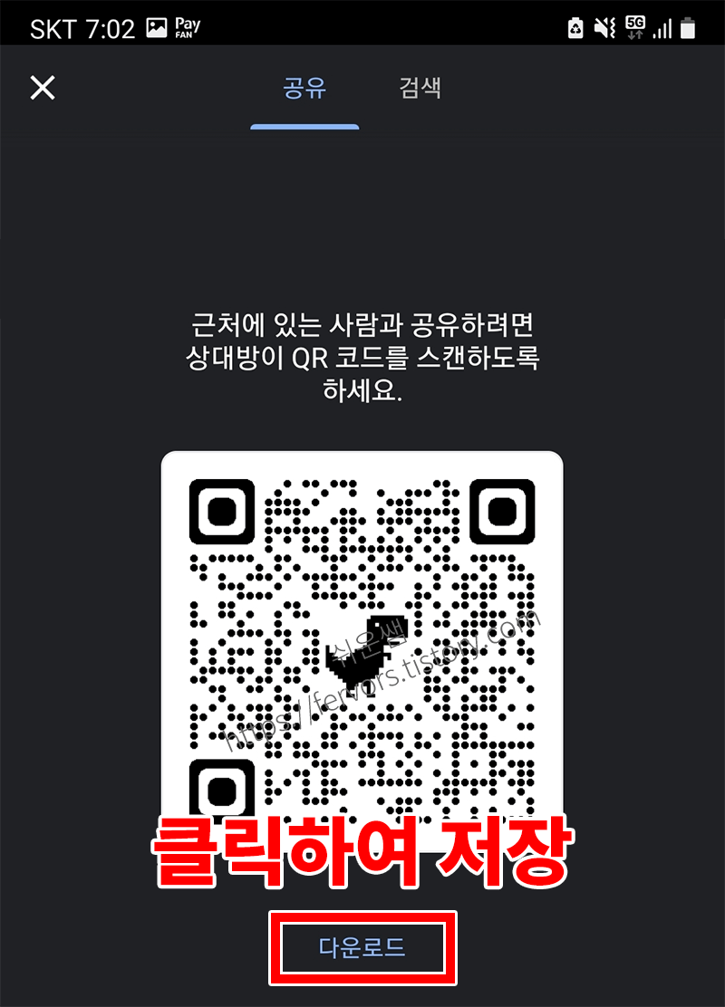 5. QR코드가 생성되었으며, 다운로드를 클릭하여 저장한 후 사용합니다.