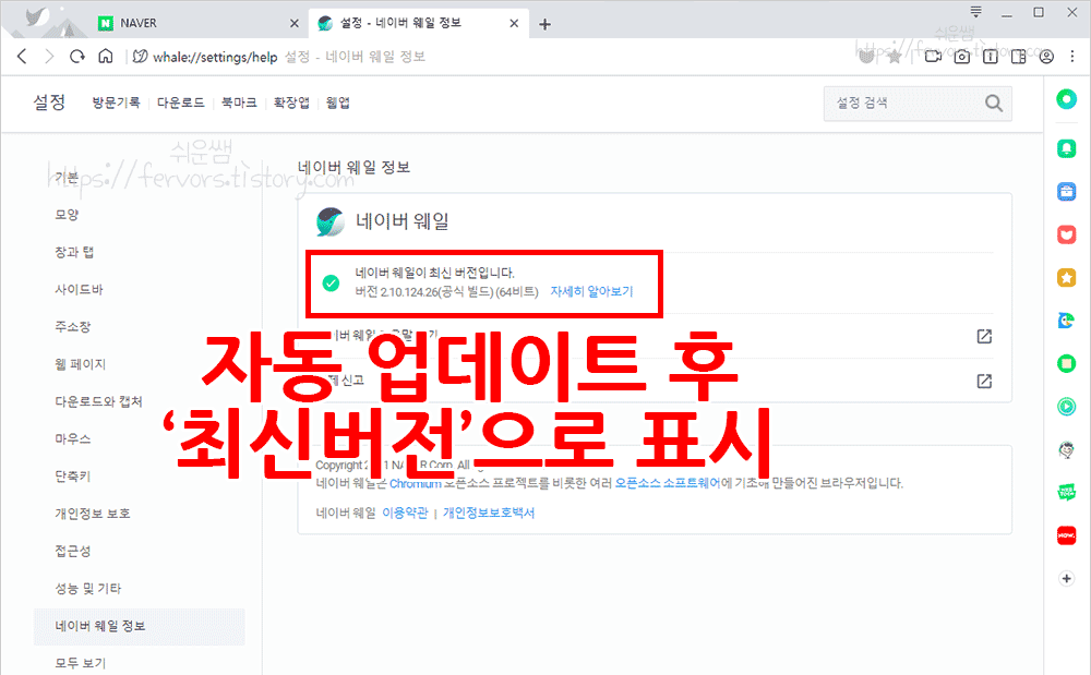 네이버 웨일 업데이트 하는 방법 - 컴퓨터