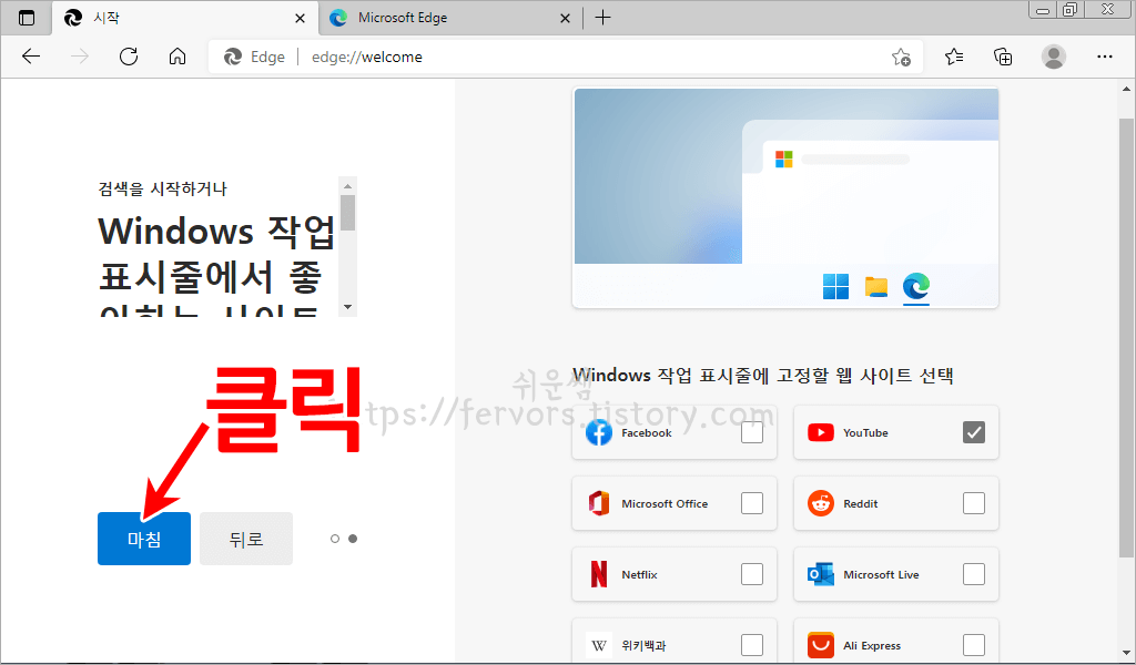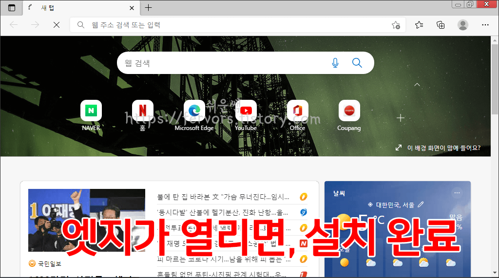 마이크로소프트 엣지(edge) 시작페이지 설정하는 방법