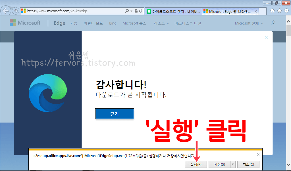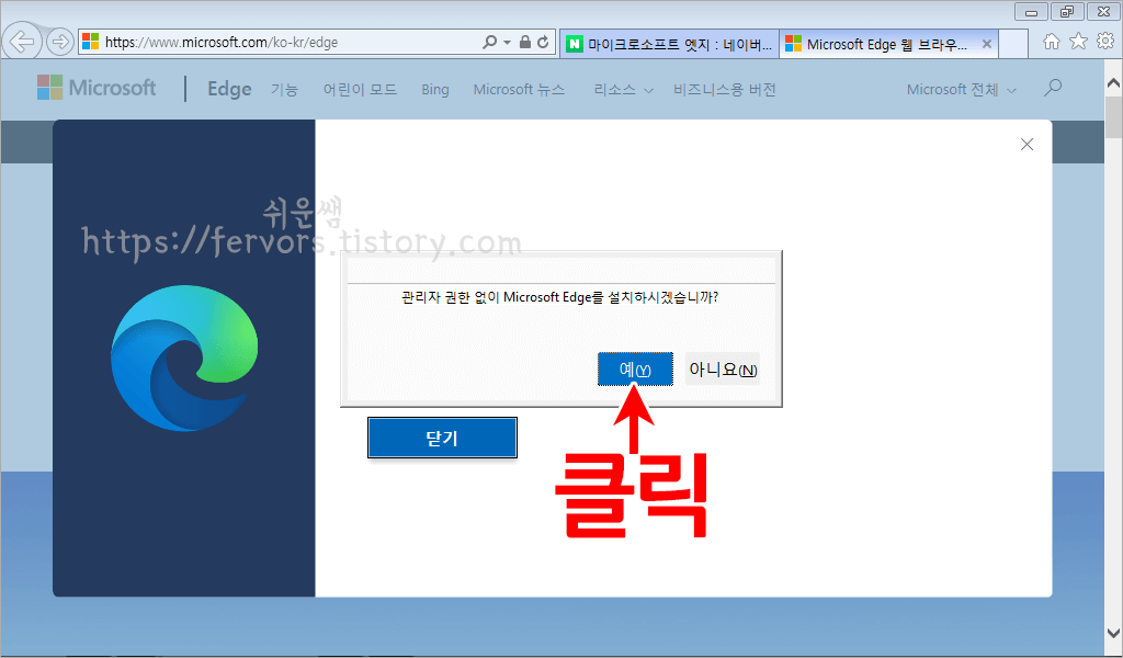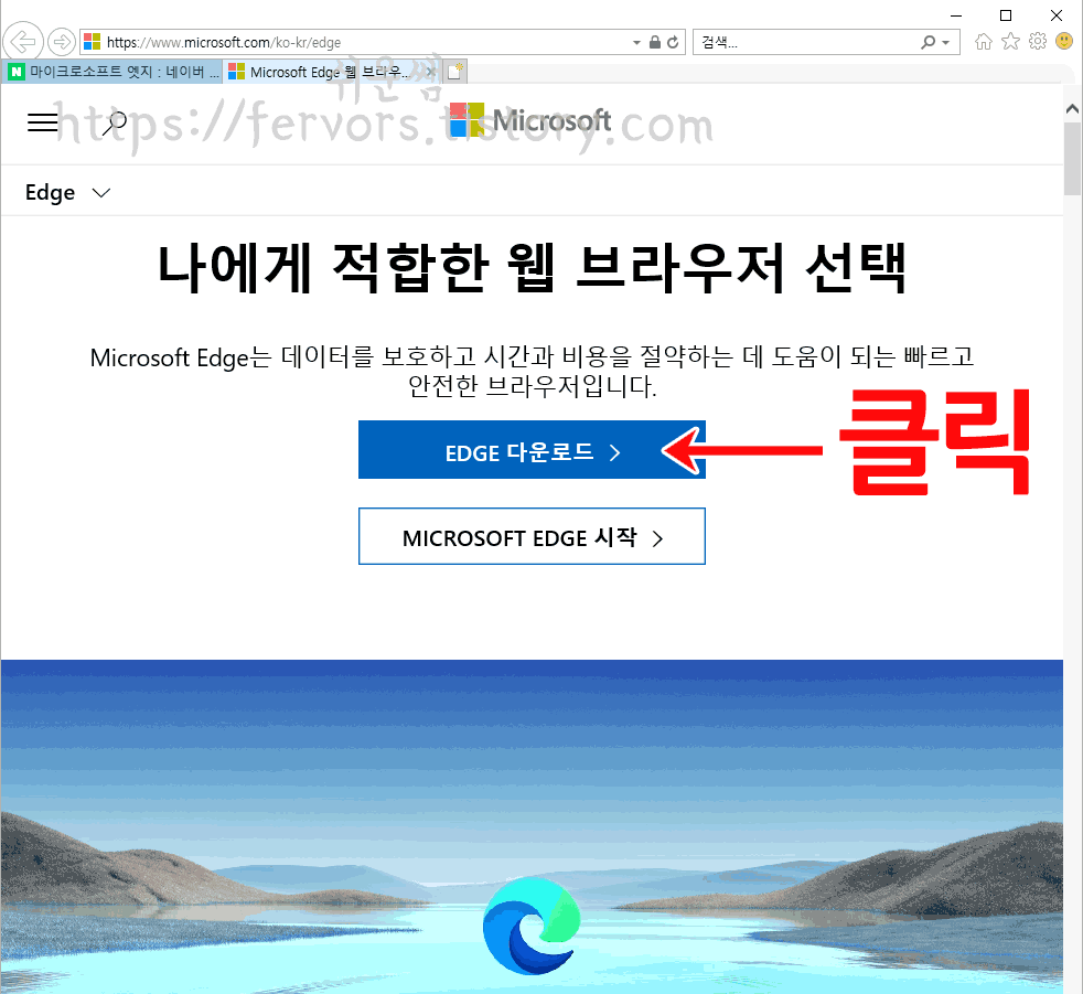 또는 아래 엣지 공식설치페이지를 클릭합니다.