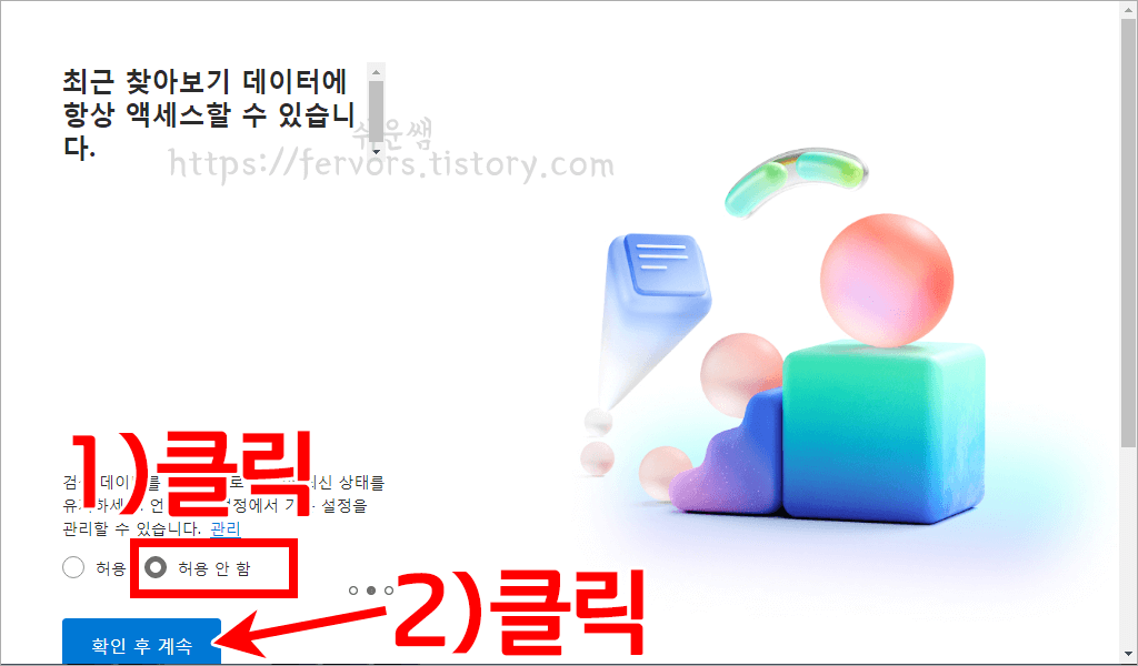 9. [허용 안 함]을 누르고, [확인 후 계속]을 누릅니다.