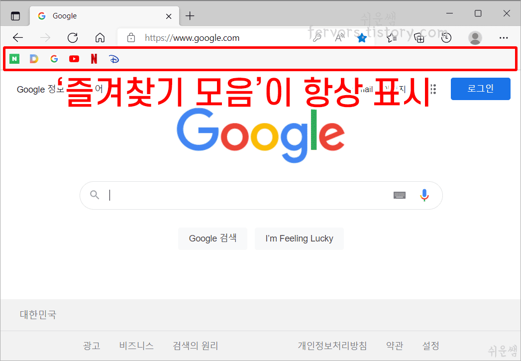 결과) 즐겨찾기 모음이 화면에서 사라지는 일 없이 항상 표시됩니다.