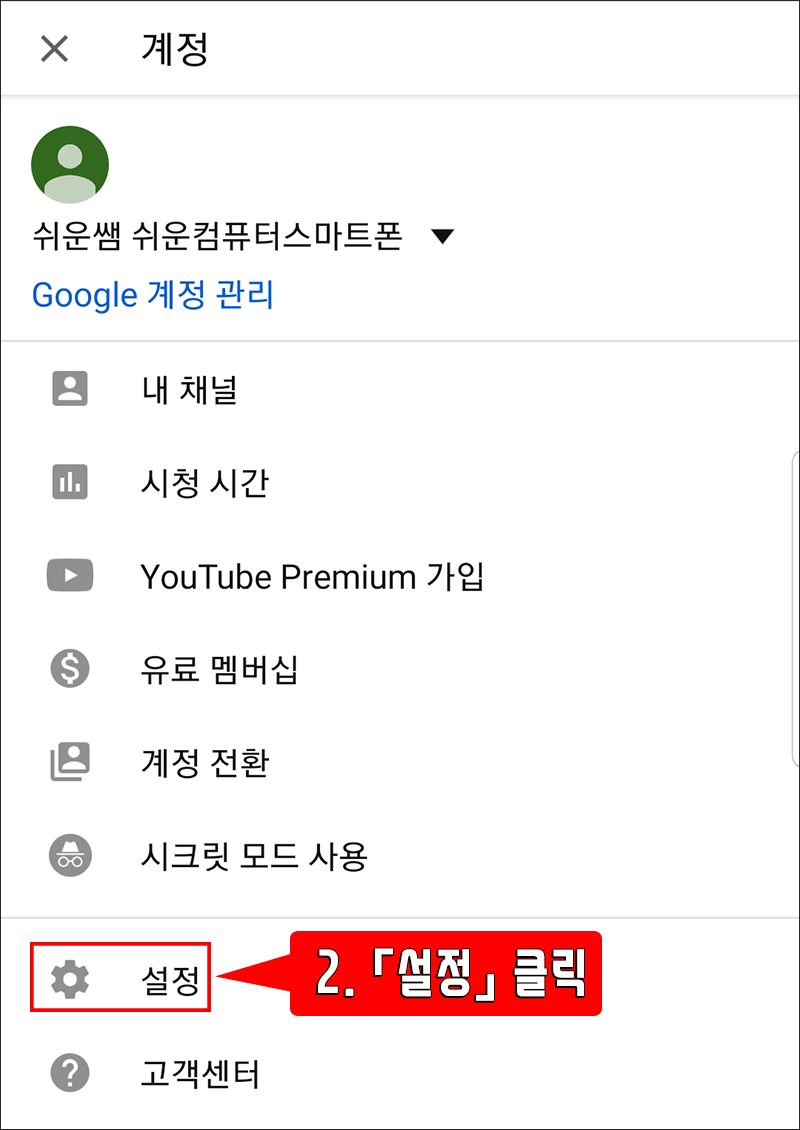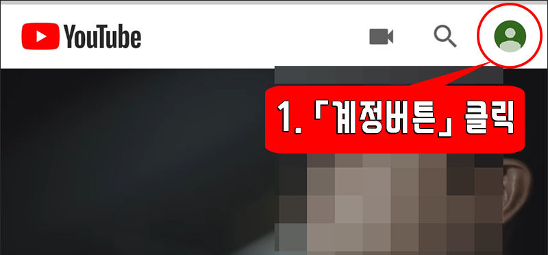 1. 유튜브 홈에서 맨 오른쪽 위의 [계정]을 선택합니다.