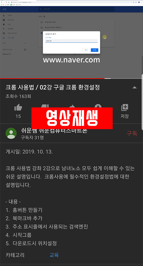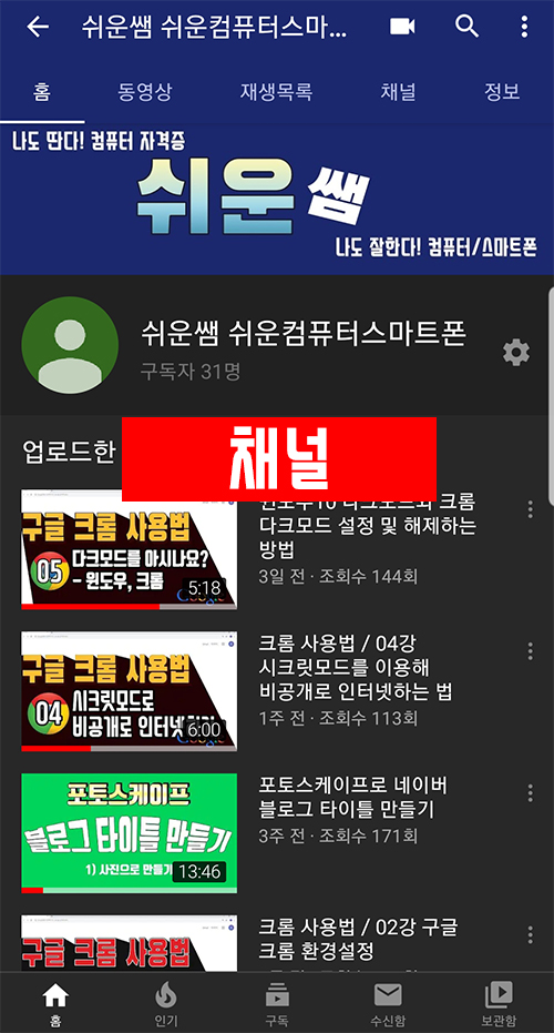 결과) 스마트폰 유튜브 앱의 홈, 채널 페이지, 영상 재생 페이지 등이 아래와 같이 변경됩니다.