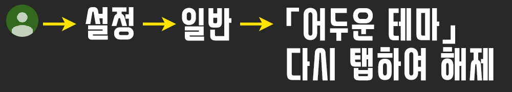방법1) 유튜브 홈 오른쪽 맨 위 [계정] 클릭 → 설정 → 일반 → [어두운 테마] 다시 선택