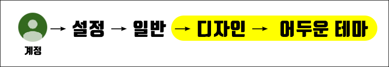 바로 어두운 테마를 선택할 수 있게 '어두운 테마'가 보일 수 있구요.