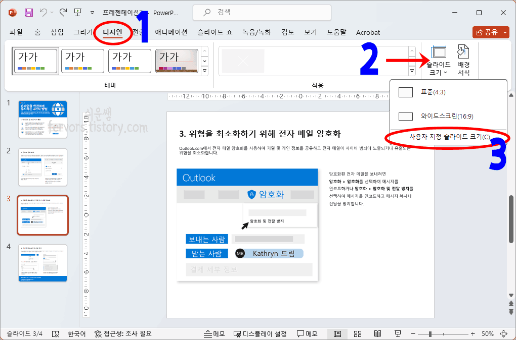[파워포인트] 슬라이드 크기, 가로세로 방향 설정하기