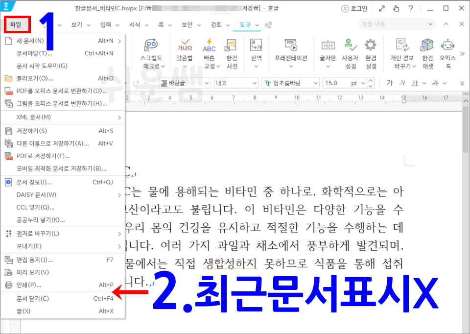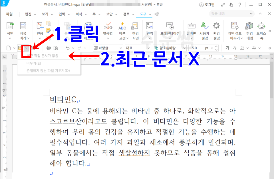 따라서, 숨기는 기능 외에 최근 문서 삭제 기능을 함께 사용하면 좋겠습니다.