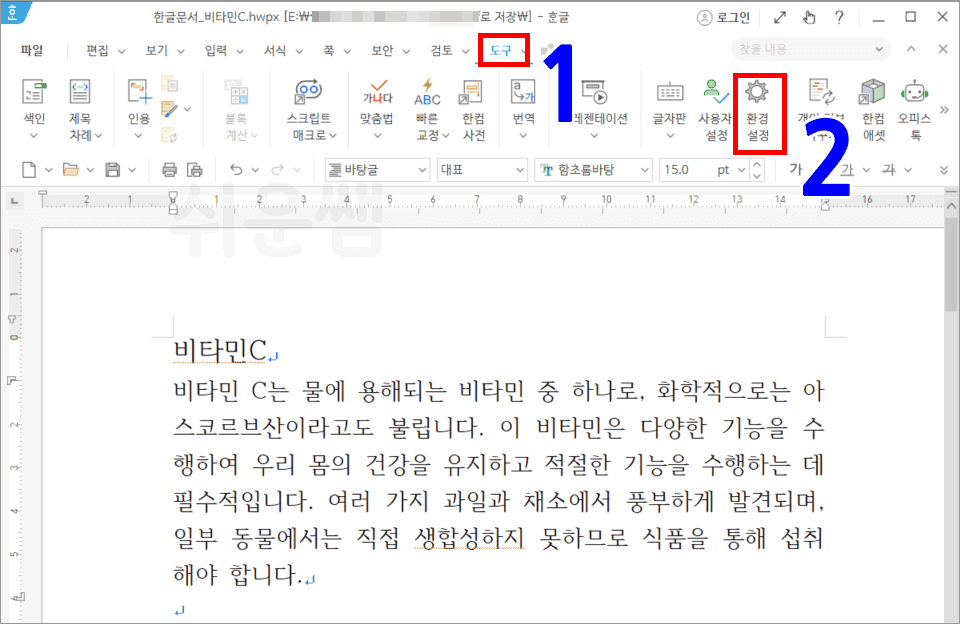 1. 상단 메뉴의 [도구]를 클릭하고, [환경 설정]을 클릭합니다.
