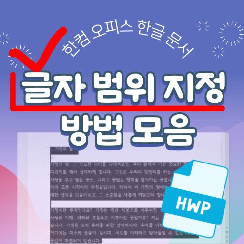 특히 서식 설정 등 편집 과정에서 글자 범위를 지정(블록 설정) 해야 할 때가 많습니다. 이때 상황에 따라 글자 범위를 빠르고 정확하게 지정하는 방법을 알면 편집시간이 단축되고, 작업이 훨씬 수월해집니다.