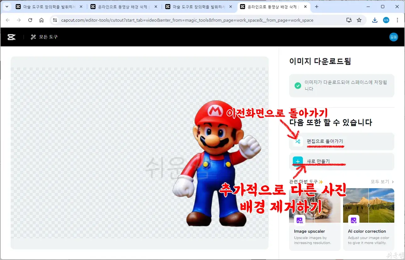 6. 다른 사진도 이어서 배경을 제거하려면 [새로 만들기]를 클릭합니다.