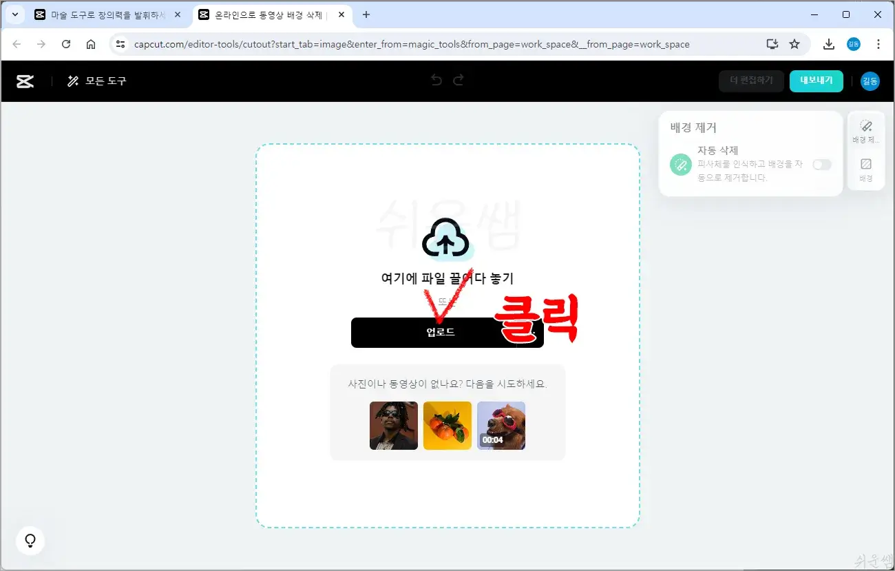 캡컷의 배경 제거 기능과 리무브bg와의 비교
