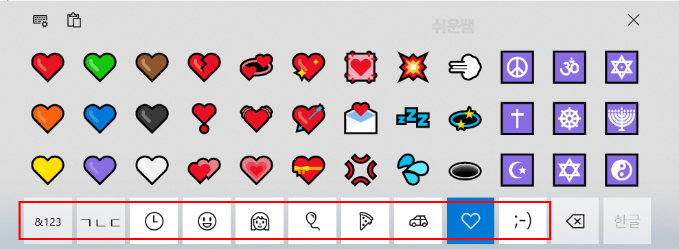 방법2) 윈도우10 이모지(이모티콘) 사용 - 터치키보드 사용