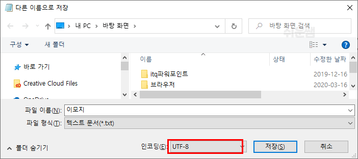 - 단, 저장할 때 유니코드형식으로 해야됩니다.