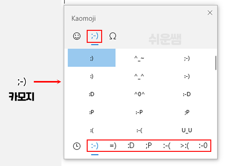 방법1) 윈도우10 이모지(이모티콘) 사용 - 단축키