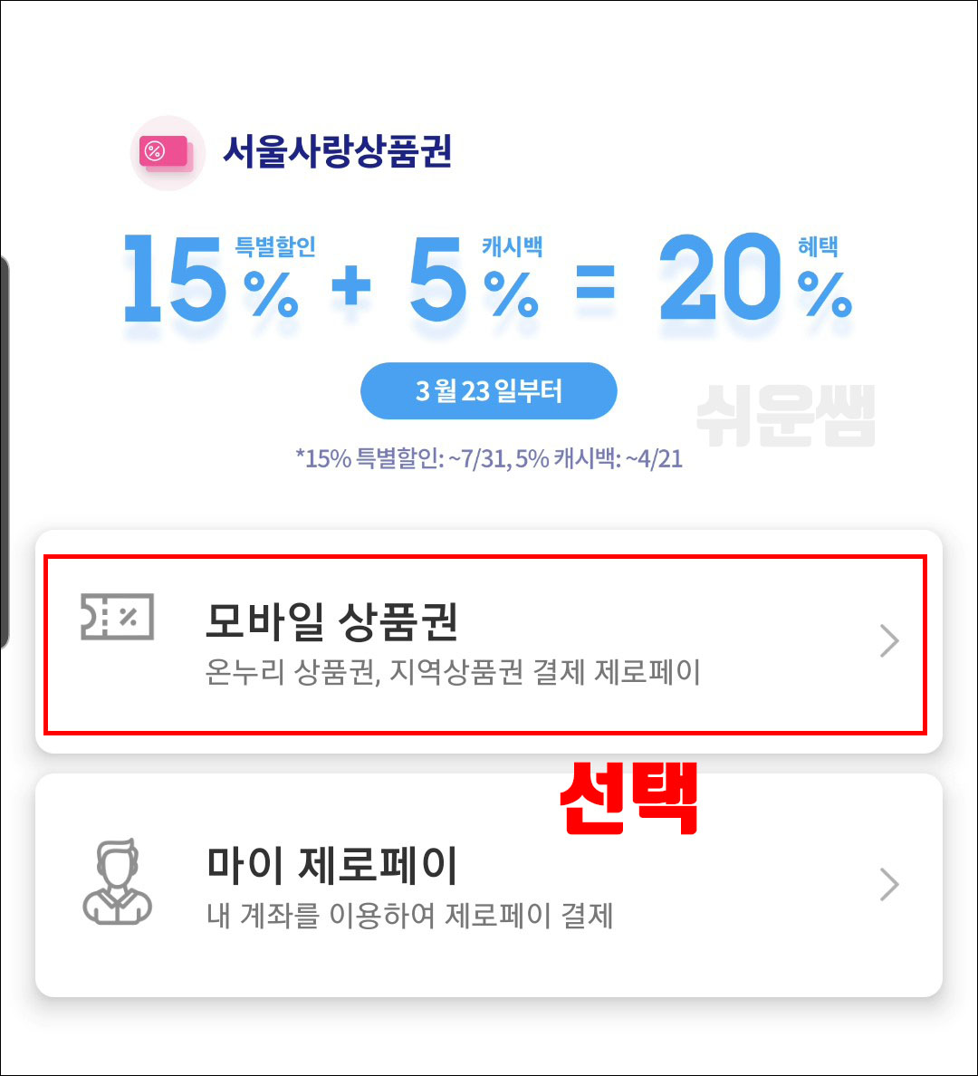 서울사랑상품권 최대 20% 할인 혜택 정보(3월 27일 부터 7월까지)