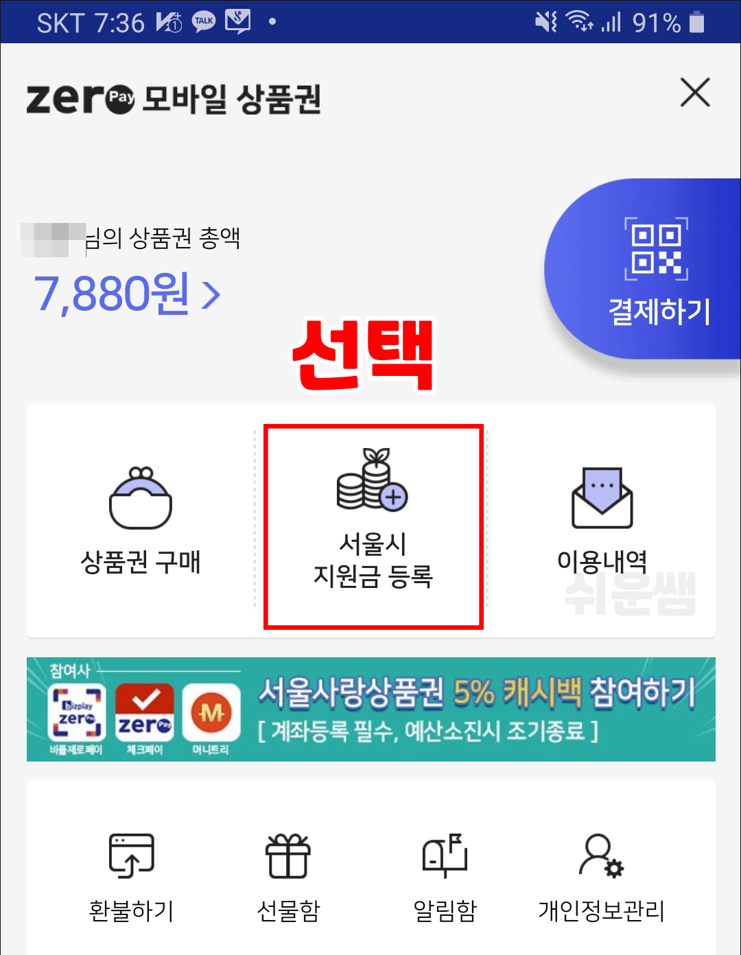 5. 상품권 사용하기 (결제하는 방법)