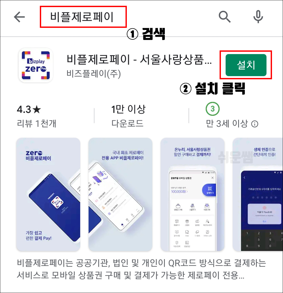 2) '비플제로페이'로 검색합니다. → [설치]를 눌러서 설치합니다.
